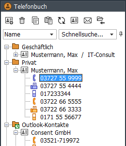 Der PhoneDialog - Ihre persönliche KommunikationszentraleVerwalten Sie Ihre Anrufe einfach, komfortabel und intuitiv auf mehreren Tabs. Verpasste Anrufe, eine Ruf-History, Kurzwahleinträge, das Kontaktformular und weitere Funktionen, sind direkt per Toolbutton, Popupmenü oder Hotkey erreichbar. Die integrierte Suchfunktion ermöglicht einen schnellen Zugriff auf all Ihre Kontakte. Um nur einige Highlights zu nennen.Kurzwahl mit TAPI-Monitoring und PräsenzstatusErstellen Sie ein oder mehrere Kurzwahlpanel mit beliebig vielen Kurzwahltasten. Dabei kann jeder Taste eine Monitor-LED zugewiesen werden. Serverbasierte Kurzwahlpanel ermöglichen zusätzlich die Anzeige des Präsenzstatus. Somit haben Sie stets im Blick, ob ein Kollege gerade telefoniert, frei ist oder nicht gestört werden möchte.Die History - alle Informationen auf einen BlickIn der "History" sehen Sie eine übersichtliche Zusammenfassung der wichtigsten Informationen zu einem Kontakt. Dabei werden Name, Firma, Anschrift, Rufnummern, EMail-Adressen, Anrufe, Notizen und weitere Datenfelder nach eigenen Vorgaben angezeigt.![]() Wahl aus anderen Anwendungen herausSie klicken einfach mit der mittleren Maustaste auf eine Rufnummer in einer E-Mail, einer Webseite oder einer Excel-Tabelle. Ein kleines Popup-Wähl-Menü zeigt die erkannte Rufnummer an und ein zweiter Mausklick startet den Anruf. Eine weitere Möglichkeit ist das direkte Wählen einer markierten Rufnummer per Hotkey (z.B. über die Taste "Pause"). ![]() Telefonbücher und Kontaktdaten organisieren