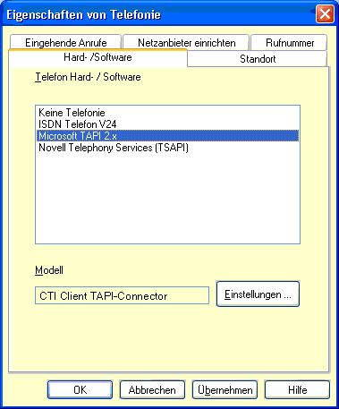 Button "Einstellungen ..."  (TAPI-Treiber konfigurieren)