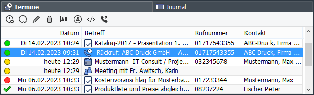 Neuer Termin/Anruferinnerung mit Rufnummer und Kontaktinformation: Wenn Sie einen Termin über das Termin-Menü des PhoneDialogs setzten, wird die aktuelle Rufnummer und die aktuelle Kontaktinformation automatisch in den Termin übernommen.
