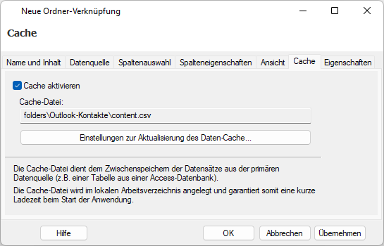 Die Kontaktdaten werden lokal zwischengespeichert, damit diese nicht bei jedem Anwendungsstart neu von Outlook gelesen werden müssen. In Outlook geänderte oder neue Daten werden später automatisch übernommen.