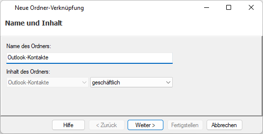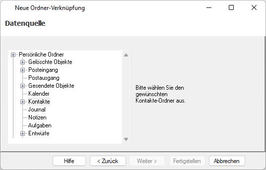 Wählen Sie hier den gewünschten Outlook-Kontakte-Ordner aus.